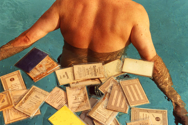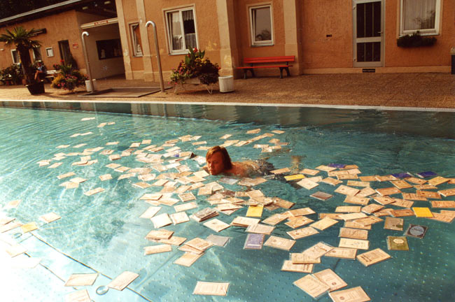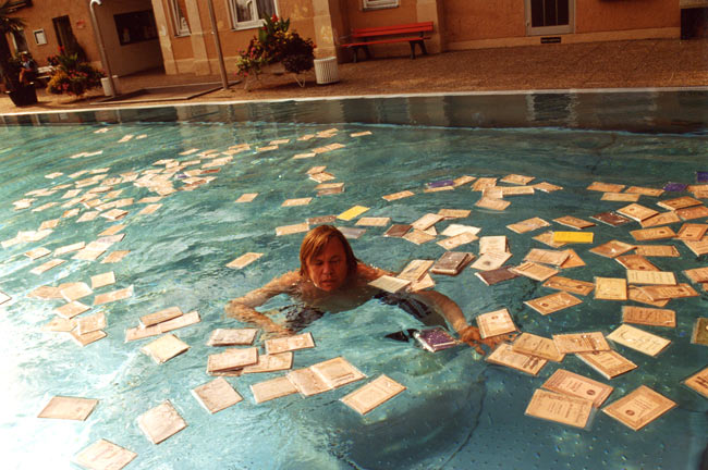 In einem alten Türkischen Bad wurde das Kaltbecken geflutet, in dem hunderte alte Reclam Hefte, eingeschweißt in Plastik zum Schwimmen gebracht wurden. Mit dieser Geste, die Blaeulich "neither fire, nor water" nannte, verwies er zum Einen auf die große kulturelle Funktion dieses Verlages als Vermittler fremdsprachiger Literaturen, der insbesonders auch die slawischen Sprachen übersetzte, oder aus dem Jiddischen oder und Türkischen, anderseits auf die Elemente der Vernichtung, wie zum Beispiel auf die Bücherverbrennungen, Archivvernichtungen, sogenannten Säuberungen unter dem Kommunismus oder Nationalsozialismus. Blaeulich zeigt mit dieser Installation